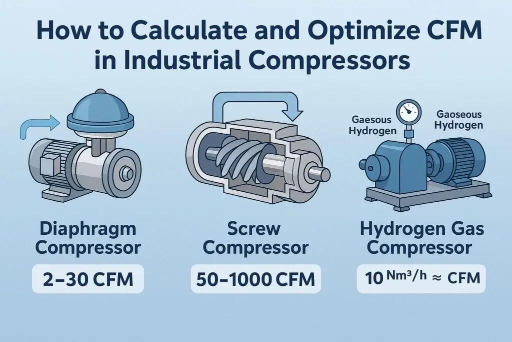 选择工业用空气压缩机远不止马力和压力这么简单。其中一个最关键且经常被误解的指标是 CFM(立方英尺/分钟)。无论您使用的是隔膜压缩机、螺杆压缩机还是专用氢气压缩机,了解如何计算和优化系统的 CFM 都将决定项目的成败。在[...]